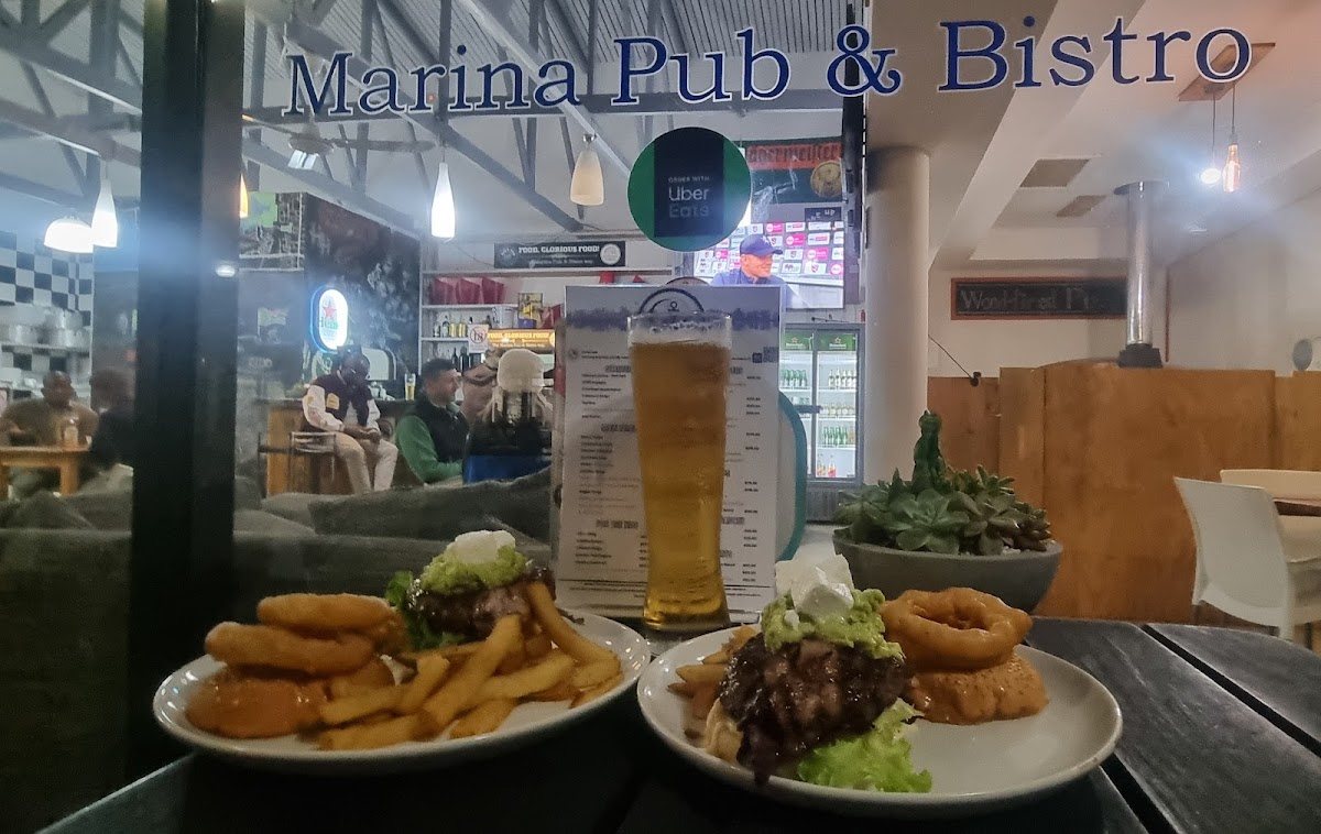 At Marina Pub and Bistro, you’re not just getting a meal; you’re indulging in the true essence of comfort food. The menu is brimming with enticing options that showcase both hearty and seafood delights. For the adventurous diner, the Chilli Popper Burger is an absolute must-try! Picture a succulent 150g beef or chicken patty, elegantly topped with creamy cheddar, zesty guacamole, and a bold bacon-wrapped chili popper, all nestled within a perfectly toasted sesame seed bun – delightfully satisfying for just ZAR 135.00.